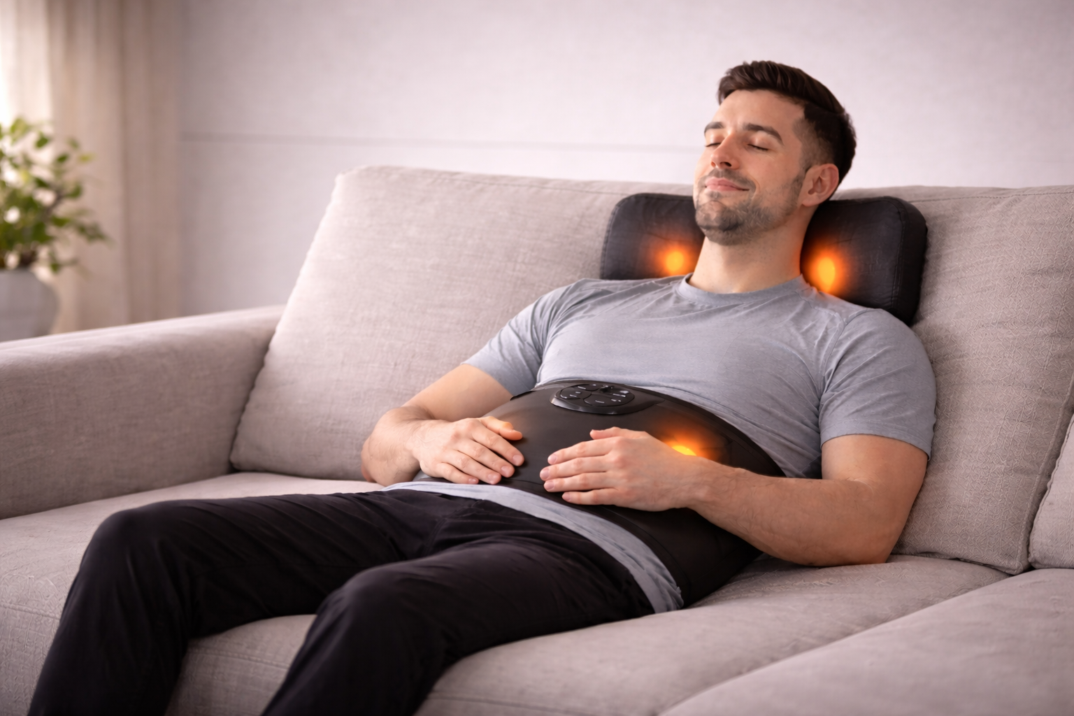 Targeted heat and deep massage to ease back pain and relax abdominal muscles in minutes.